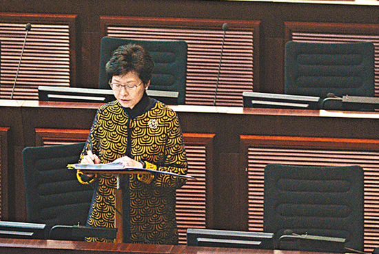 林郑月娥指立会乱源心中有数。大公网记者 梁祖彝摄