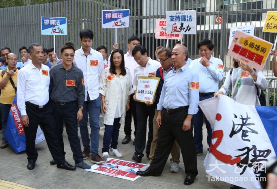 参加游行的代表说,新界各界全力支持全国人大常委会于11月7日依法通过对《中华人民共和国香港特别行政区基本法》第104条的解释。我们并促请特区政府、立法会主席及相关部门能认真遵循与释法相符合的法律规定。