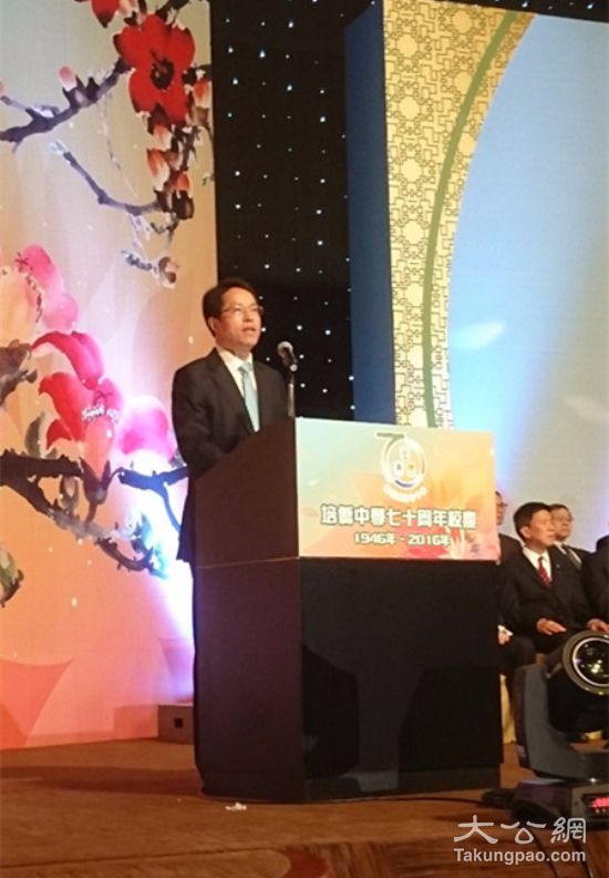 张晓明今晚在培侨中学七十周年校庆上致辞。大公报记者朱晋科摄