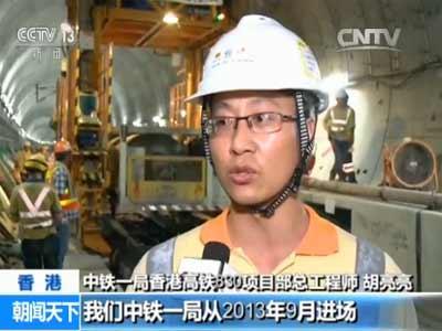中铁一局香港高铁830项目部总工程师 胡亮亮:最后这一段,今天我们浇筑的里程长度是110米合拢段,从早上8点到晚上6点,用时10个小时全部浇筑完成。