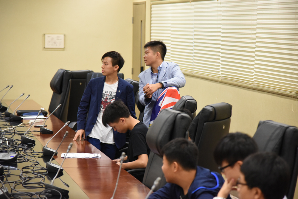 今届议会有三名学生担任议员,他们坐在U形的会议长桌前,每名议员身边均有其议员助理,记者发现欧阳耀光旁边竟坐着学生动源召集人钟翰林!钟更不时和欧阳耀光及其助理们交头接耳。主持人要求钟翰林坐到公众席,欧阳耀光争辩不果,钟翰林之后悻悻然坐到本报记者旁边。
