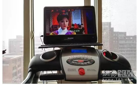 吴厚斌为了解闷,在自家跑步机上放了一台联想一体机,运动时看电视剧。