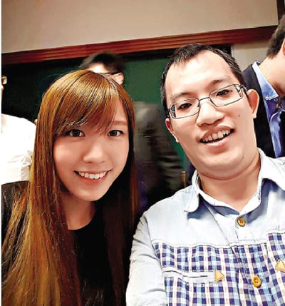 林浩基(右)自称是游蕙祯忠实支持者,于游蕙祯往台湾参加讲座时,林浩基亦陪伴在侧。网上图片
