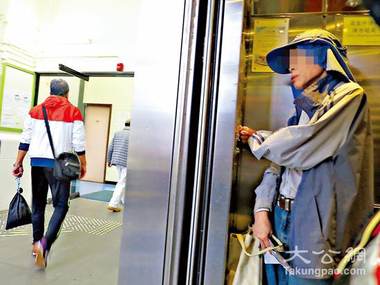 游父(右一)返回旺角的自置物业。其父现已退休,退休前月入近五万。