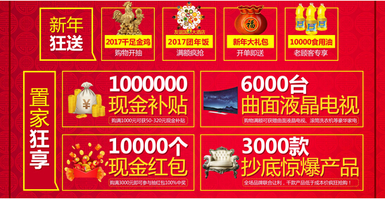 12月24、25、31日、1月1、2日,友谊国际家居还将隆重举行为期5天的新年抢购大型狂欢活动,千余精美建材、家具、灯饰9元起劲爆抢购!折后返现高达32%、“1000000现金补贴”、“20000份好礼狂送”、“100000红包送不停”等丰富多彩的促销活动多重促销活动,给市民带来史无前例的购物惊喜!