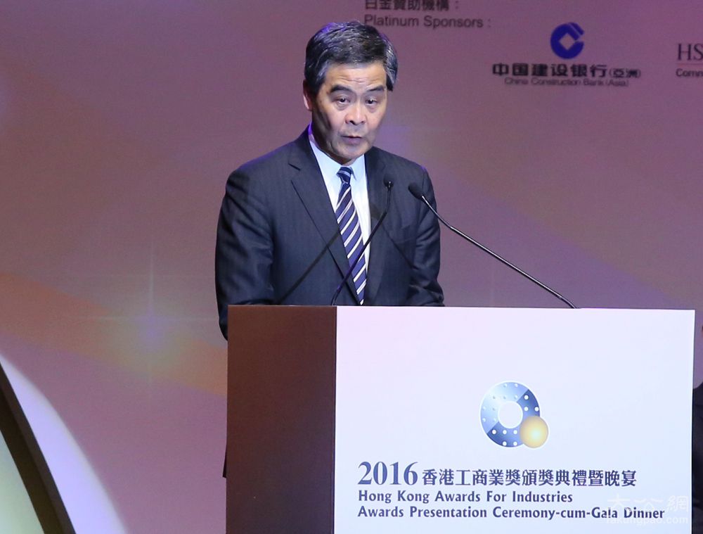 图:梁振英在2016香港工商业奖颁奖典礼上致辞 大公报记者何嘉骏摄
