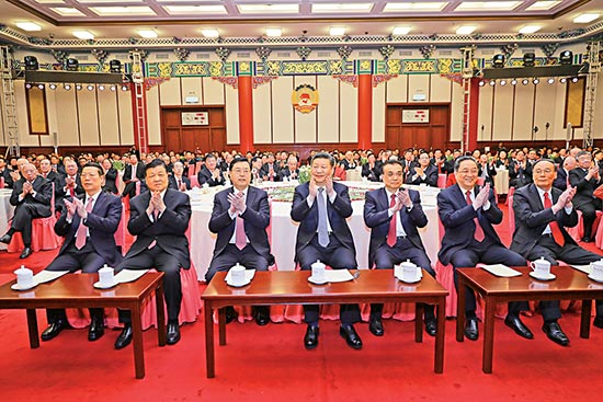 党和国家领导人习近平、李克强、张德江、俞正声、刘云山、王岐山、张高丽等同各民主党派中央、全国工商联负责人和无党派人士代表、中央和国家机关有关方面负责人以及首都各族各界人士代表欢聚一堂,共迎2017年元旦。