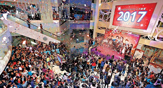 图:铜锣湾世贸中心地下露天广场举行《2017 Shine Forever除夕倒数派对》活动,市民喜迎2017年
