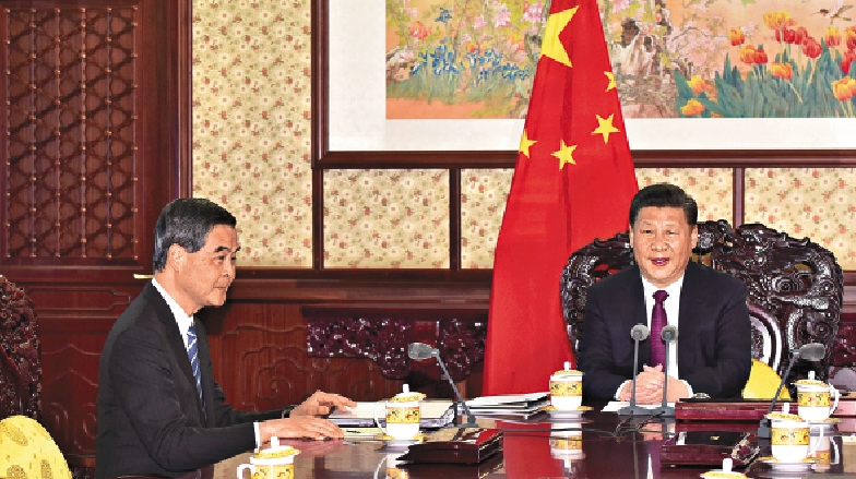 图:习近平上月会见赴京述职的行政长官梁振英时,提及需坚定地维护国家主权/资料图片