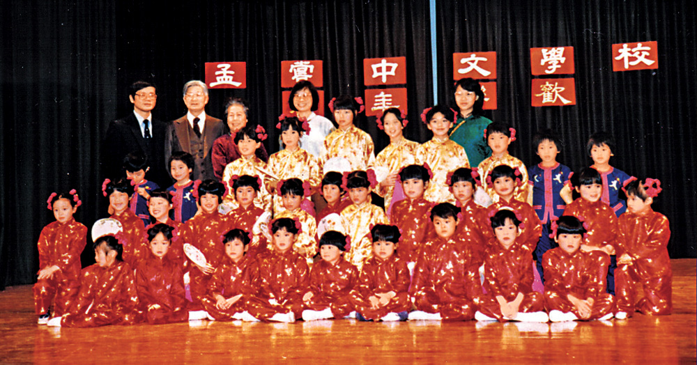 图:李焯芬1987年在加拿大孟尝中文学校农历新年庆祝会与表演学生合照/李焯芬供图