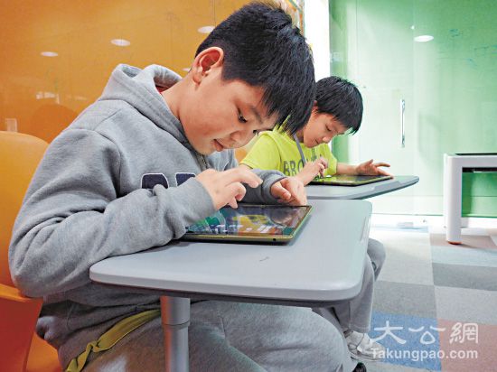 天虹小学让小学生以平板电脑设计不同物件。大公网记者张月琪摄