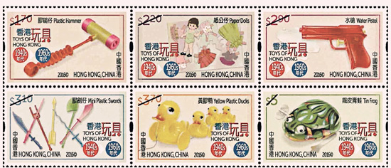 Made in Hong Kong玩具昔日行销全球,令港人自豪。图为邮政局今年推出玩具主题邮票