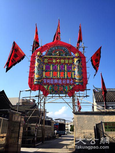 本地围村为庆祝节庆而搭建的花牌。黎俊霖供图