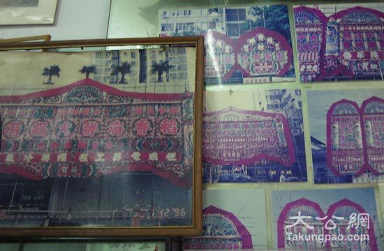 花牌店内陈列了上世纪不同年代的花牌照片。大公网记者刘毅摄