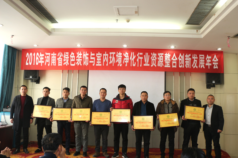 12月31日,由中国室内环境净化行业联盟、河南省室内车内环境及环保产品质量监督检验中心主办的2016年河南省绿色装饰与室内环境净化行业资源整合创新发展年会在省军区长城宾馆召开!中国室内装饰协会副会长、河南省建筑装饰装修协会常务副会长李小立,中国室内环境净化行业联盟常任副主席、省室内车内环境及环保产品质量监督检验中心主任李振委,东方今报媒体运营总监李书衡,河南信心律师事务所主任时人伟,河南电视台法治频道制片人王应强,河南室内环保监督大队大队长兼新乡中心主任陈利峰、洛阳中心主任任元敏、开封中心主任姚花平、漯河中心主任彭关红等领导及近200名企业家代表嘉宾出席该年会。会议由东方今报媒体运营总监李书衡主持召开,会上与会领导及企业家们一起总结16年行业取得的辉煌成绩,共同探讨新形势下行业发展大计。