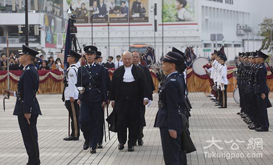 图:法律年度开启典礼在香港大会堂举行,终审法院首席法官马道立检阅警察仪仗队/大公报记者林少权摄