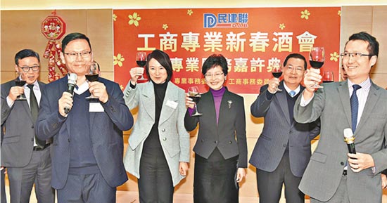 张国钧(左一)以个人身份加入林郑月娥的竞选办。资料图片