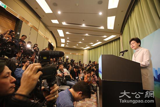 图:林郑月娥昨于会展中心召开记者会,正式宣布参选下一任行政长官/大公报记者麦润田摄