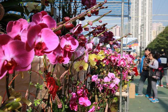 图:年宵市场中,花属永恒焦点大公报记者麦润田摄