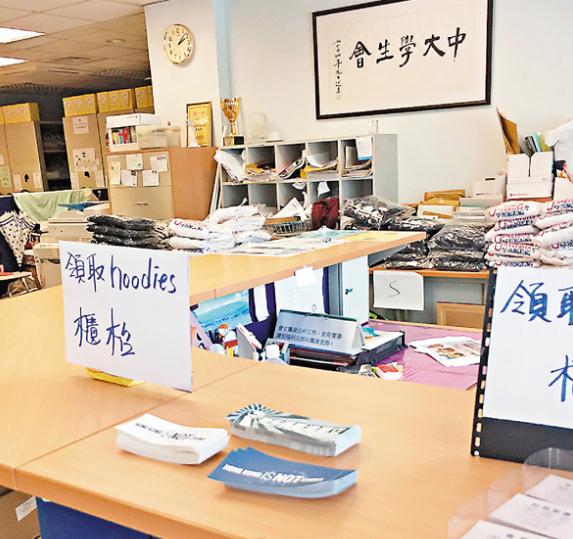 中大学生会会室摆放大量宣扬香港独立贴纸任人领取。