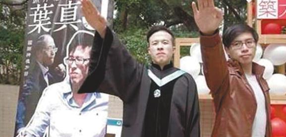 中大学生会会长周竖峰(右)去年曾模仿纳粹敬礼手势拍照。fb图片