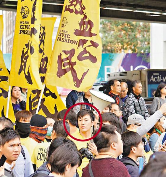 郑松泰(红圈所示)在2015年3月率领热狗成员进行所谓反水货客行动时,曾临阵缩沙自行离开,令不少参与者惹上官非。