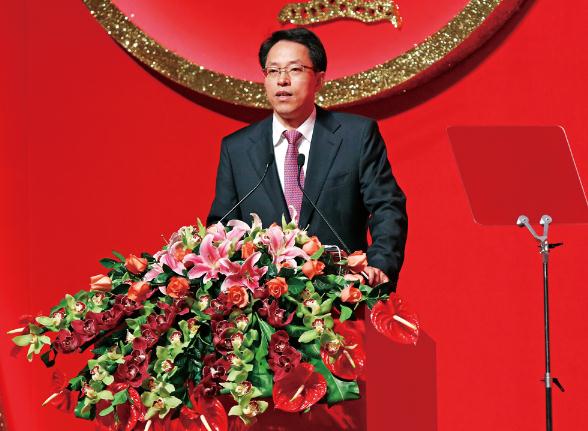 图:张晓明向730万香港市民致以新春的祝福,并发表了题为《不忘初心稳中求进》的新春致辞/大公报记者蔡文豪摄