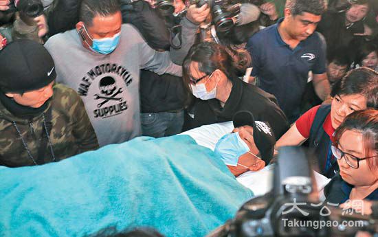 图:华仔凌晨一时许送抵养和医院,由担架床送上病房/大公报记者黄俊华摄
