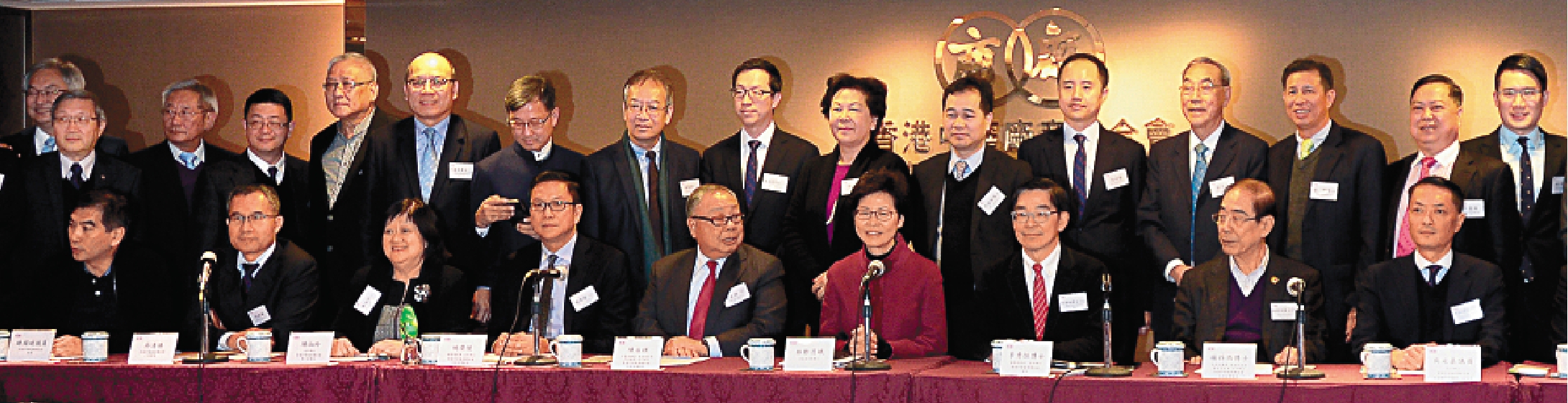 图:林郑月娥昨日与商界代表会面,分享对香港经济发展前景的看法。图为林郑与厂商会代表的合照/大公报记者林良坚摄