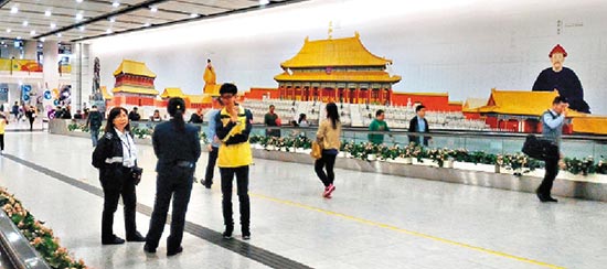 图:港铁安排职员不时巡逻,防止有人再在扶手梯贴上贴纸