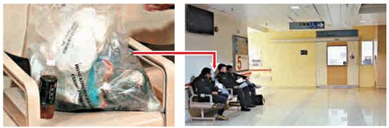 疑纵火男子被送入威尔斯医院五楼烧伤中心进行急救手术,门外有三名警员看守,旁边放有一袋疑为属于疑犯的证物。大公报调查组摄