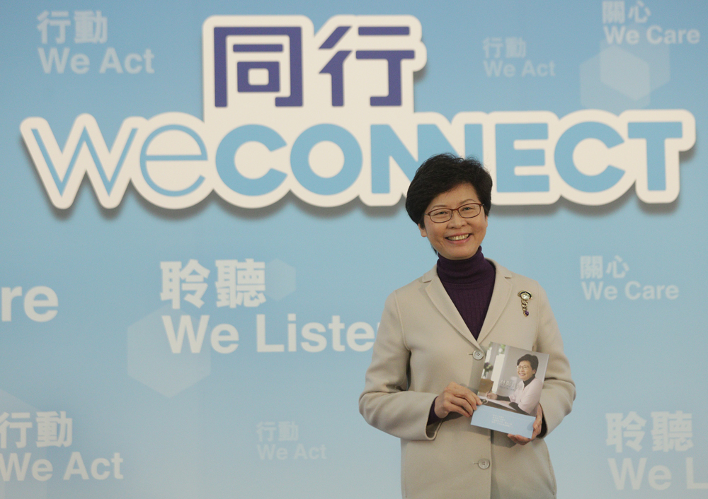 林郑月娥说:我生于斯、长于斯,以香港为家;我受惠于香港的腾飞,对香港有承担;我期盼与大家同行,建设一个更美好的香港。