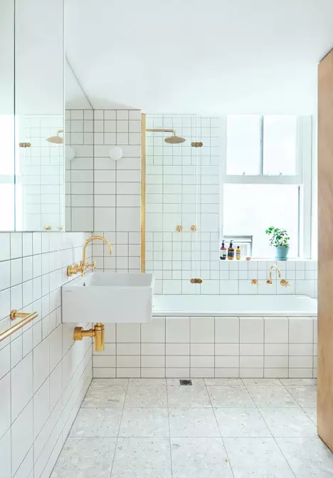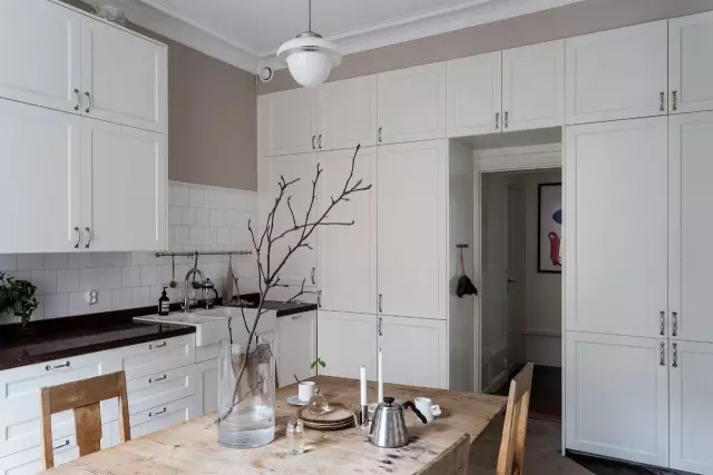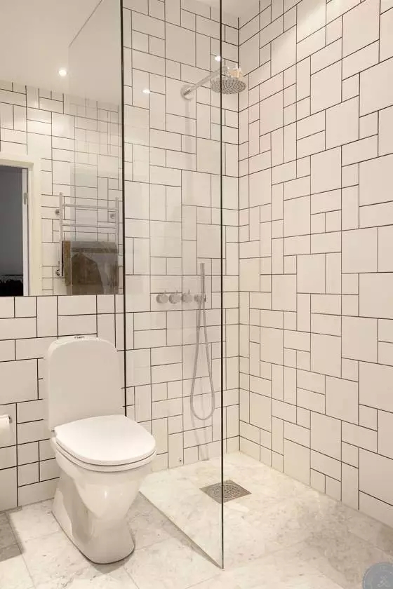 这贴法也厉害,混和大小尺寸正方形、矩形白磁砖,拼出有宽窄变化的线条律动。小提醒:不同尺寸磁砖的长短边,彼此最好有一边相同或呈倍数,拼贴起来,水平垂直方向沟缝都有对齐,才能成就乱中有序的美感。