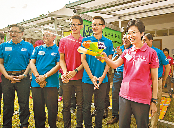 前年中,时任政务司司长的林郑月娥在乌溪沙青年新村体验摊位游戏。资料图