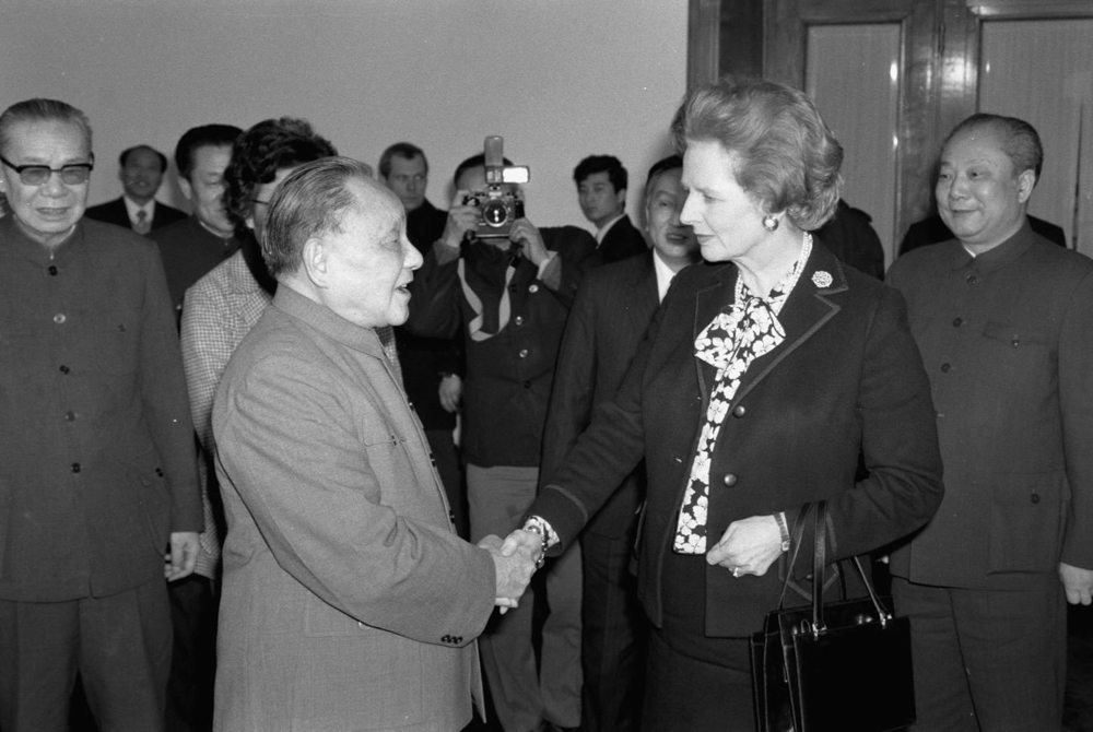 邓小平1984年12月19日在北京人民大会堂会见英国首相撒切尔夫人,重申一国两制方针政策。
