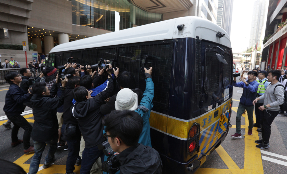 图:判刑后,七名被告由囚车送返荔枝角收押所/大公报记者林少权摄