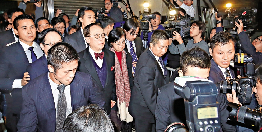 图:曾荫权昨晚与家人离庭时,对在场追访的传媒一言不发/记者黄洋港摄