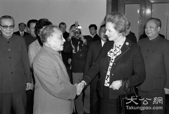 邓小平1984年12月19日在北京人民大会堂会见英国首相戴卓尔夫人,重申一国两制方针政策。资料图