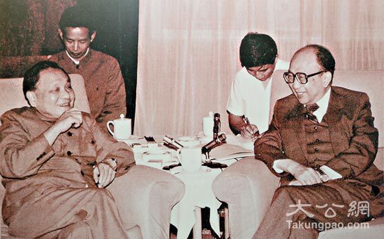 1982年,邓小平在会见《大公报》社长费彝民等12人,宣布中国将收回香港。消息经《大公报》独家发布,举世震动。资料图