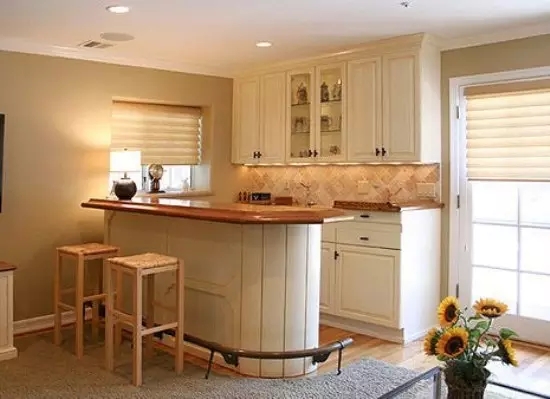 小编提示:在装修吧台时应尽量考虑其实用性,可以加宽、放低,把吧台变身聚会大餐桌;并选取适当位置,避免影响其他家具功能,以免功能单一遭到抛弃。