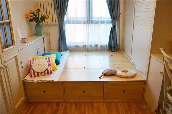 很多地台往往只利用了边缘部分。一些地台上摆放的物品较多,经常储藏或取东西很麻烦。此外,榻榻米上如果铺草席之类,卫生也很难打理。