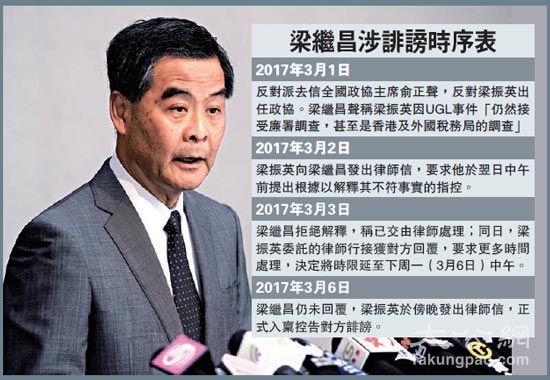 梁振英已向法院入禀梁继昌离间,而梁继昌认可其代表状师已收到法庭令状。至公报造图