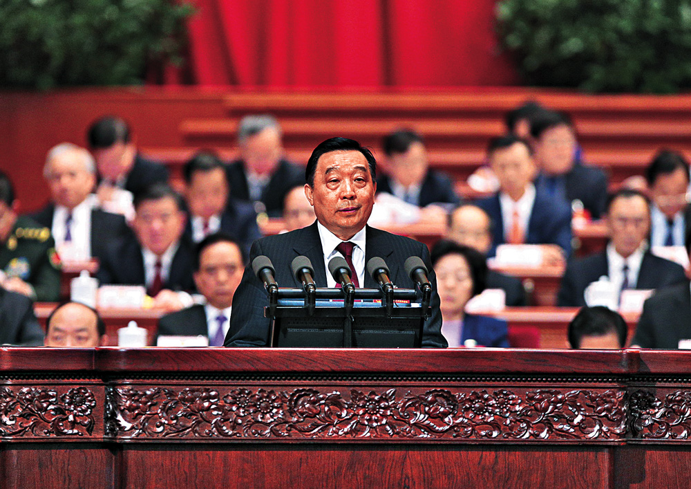 图:王晨作第十三届天下人平易近代表大会代表名额战推举问题的决定草案的申明\中新社