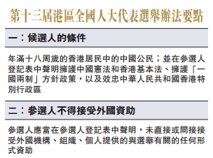 至公网3月9日讯(记者许嘉信、朱晋科)十二届天下五次昨日举行第二次整体味议。天下常委会副委员幼兼秘书幼王晨就第十三届天下代表推举法子的草案作申明。推举法子新增要求港区天下代表参选人声明反对中国战喷鼻港根基法、反对一国两造、喷鼻港出格行政区,以及未有接管外国赞助。