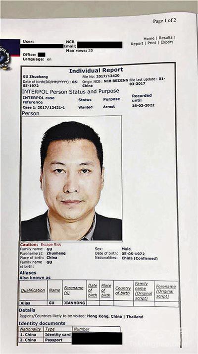 美贷网事务至今两年多,谷卓恒多次抛清与美贷网的关系。谷卓恒前日更发声明,指他遭国际环球一事内容全无动静来历,所有渠道都无有关资讯,故不作评论。不外,有网媒与得该赤色令的文本,显示令是于仲春二十八日发出,无效期至二〇二二年仲春二十八日,为期五年,并说明谷卓恒的是中国刑法176章吸纳公家款子,属于诈骗,相关最高科罚为十年。文件亦附有谷卓恒相片,并列出他的小我材料及身体特性,包罗姓名GU Zhuoheng,别号为GU Jianhong、头发玄色、黑眼球,以及身份证号码及护照号码等。动静指环球警方得知谷卓恒成为环球犯,可展开法律步履,置信谷卓恒法网难追!