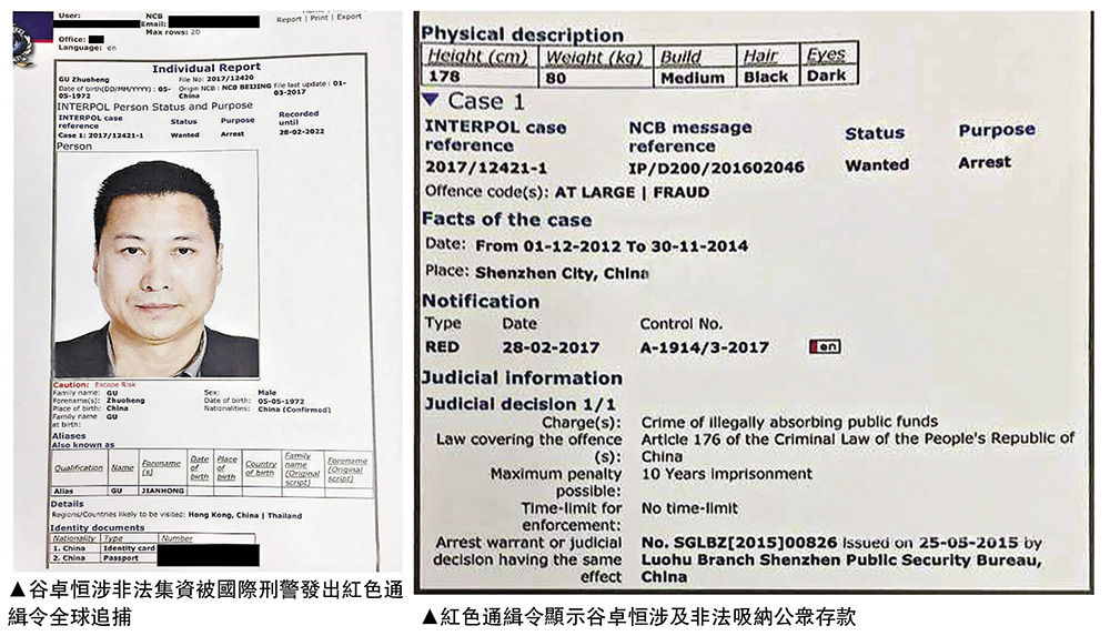 图:谷卓恒涉集资被国际发出赤色令环球追捕