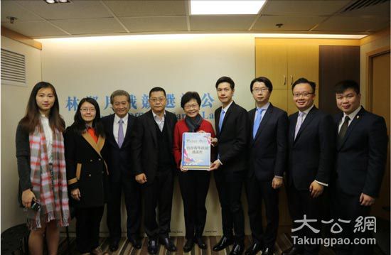 喷鼻港青年联会的代表向林郑月娥递交特首青年政纲筑议书