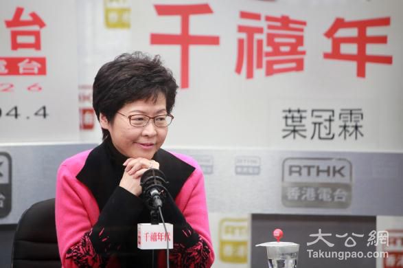图:林郑月娥正在节目暗示,因拜候时间较早,乘港铁能够跟市平易近倾下偈大公报记者麦润田摄