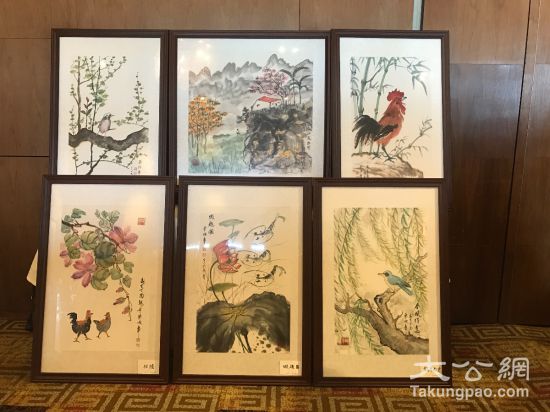 展出画做大部门为蔡俊章博士退休后的创做,连系展出地址为水上餐厅的特色,其画做中也有良多水上墨趣。蔡俊章暗示,他晚年受齐白石画做的影响,钟情于画虾,伴侣城市客套地称他为虾王。他引见,画虾起首要留意动静连系,其次是墨印浓淡适中,控制好时间点,并且更要留意画虾点睛的部门。使虾的跃然于纸上,非论形态、墨韵表示手法都让其灵趣活现,仿佛跃然于面前。
