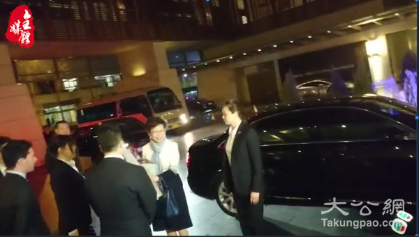 林郑月娥抵达酒店。大公报记者冯翰林摄